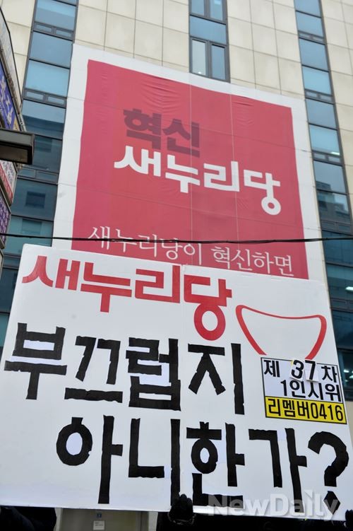 [포토] 새누리당 앞에 선 세월호 참사 국민대책회의