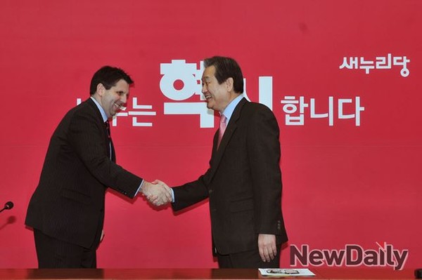 김무성 새누리당 대표가 16일 서울 여의도 국회 당대표실에서 [마크 리퍼트(Mark William Lippert)] 주한 미국대사를 접견하고 있다.