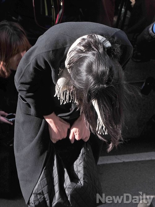 현재 심경과 회항 지시 여부, 승무원 폭행 여부들을 묻는 기자들의 질문에도 "죄송합니다"라는 말만 반복했으며 계속 눈물을 흘리면서 검찰청사로 들어갔다.