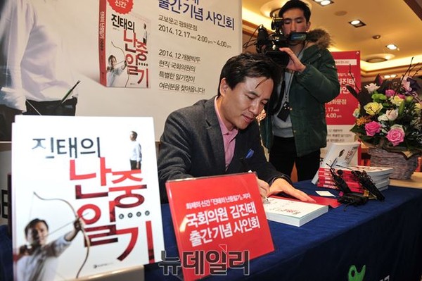 • 김진태 새누리당 의원이 17일 오후 서울 광화문 교보문고에서 '진태의 난중일기' 출간 기념 사인회를 가지고 있다.
