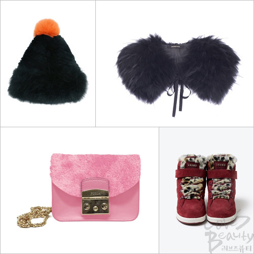 본격적인 겨울, 추워진 날씨 탓에 아우터는 점점 두꺼워지고 스타일을 살리기란 그리 쉽지만은 않다. 혹독한 추위 속에서도 스타일만은 사수하고 싶은 이들이라면 글래머러스한 퍼(fur) 아이템을 선택해보자.퍼 아우터 & 베스트퍼 아우터는 무겁고 나이 들어 보이는 [사모님 패션]이라는 생각은 그만. 화려한 컬러, 다양한 패턴의 퍼가 대중화되면서 한결 가볍고 산뜻하게 즐길 수 있는 아이템이 됐다.볼륨감 있는 퍼 코트는 보온성은 뛰어나나 자칫 북극곰처럼 부해 보일 수 있는 치명적인 약점을 갖고 있다.이때 상의는 심플한 티셔츠, 하의는 슬림한 스키니 팬츠를 매치하는 것이 중요하다.이제 갓 퍼 아이템에 입문해 코트가 부담스럽다면 퍼 베스트로 스타일링 하는 것을 추천한다.퍼 특유의 고급스러움은 유지하면서 좀 더 캐주얼한 스타일을 연출할 수 있다.베스트는 소매가 없어 코트, 라이더 재킷 등 아우터 위에도 걸칠 수 있으며, 실내에서는 외투를 벗고 이너 위에도 입을 수 있어 보온력 뿐 아니라 활용도 또한 높은 멀티 유즈 아이템이다.퍼 아이템머플러, 모자, 가방 등의 퍼 액세서리는 작지만 전체적으로 패션 지수를 한층 업그레이드 해준다.칙칙하고 밋밋한 겨울 코트에 포인트를 주고 싶다면 퍼 소재 머플러를 매치해 화려하고 페미닌한 매력을 강조할 수 있다.퍼는 풍성한 볼륨감이 있으므로 오버사이즈룩에 매치하기보다는 여성스러운 실루엣의 아우터에 매치하길 추천한다.퍼 소재 모자는 캐주얼 룩에 매칭하기 좋은 아이템이다. 도톰한 두께의 털모자는 발랄하고 경쾌한 느낌이 있어 방한 효과뿐 아니라 어려 보이는 효과까지 얻을 수 있는 일석이조의 아이템이다.이 외에도 퍼 소재 열쇠고리, 퍼가 트리밍 된 가방 등도 패션에 다양한 포인트를 줄 수 있다.[사진 = 오즈세컨, 스코노, 훌라, 제라르 다렐]