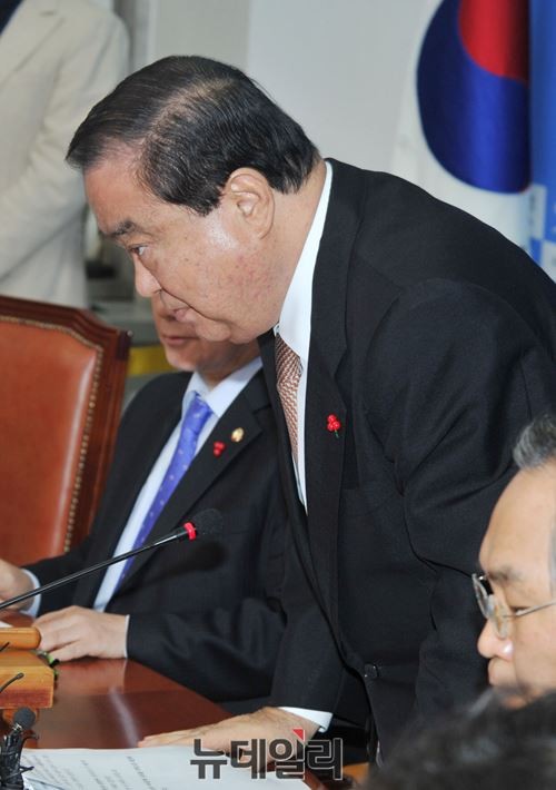 문희상 새정치민주연합 비상대책위원장이 19일 오전 서울 여의도 국회에서 열린 비상대책위원회의에서 처남 취업청탁 관련 사과를 하고 있다.