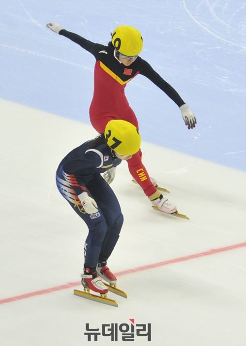 쇼트트랙 국가대표 최민정 선수가 21일 서울 목동 아이스링크에서 열린 [2014-2015 국제빙상경기연맹(ISU) 쇼트트랙 월드컵 4차대회] 여자 1500m 결승전에서 역주를 펼치고 있다.