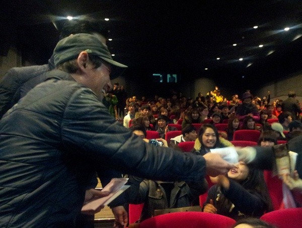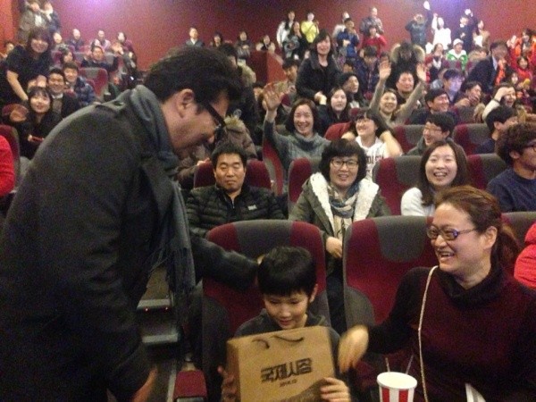 황정민은 “'국제시장'을 보고 극장을 나설 때 부모님께 꼭 전화 한 통 드렸으면 좋겠다”며 관객들을 꼬옥 안아주는 팬 서비스로 관객들을 열광시켰다. -