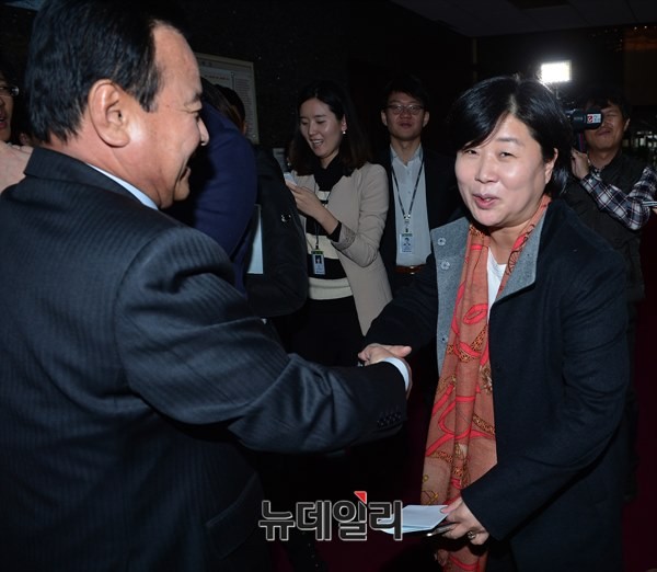 새누리당 이완구 원내대표가 23일 오후 국회 원내수석회의실 앞에서 새정치민주연합 서영교 원내대변인을 따뜻하게 포옹했다.이날 양당은 원내대표 주례회동을 통해 정국의 교착 상태를 풀어보려 시도했다. 그러나 오전 11시에 있었던 서영교 원내대변인의 "국회 운영위를 보이콧하는 행위는 용서되지 않는다", "새누리당 원내대표가 새정치민주연합의 우윤근 원내대표의 요구를 받아들여야 할 것"이라는 브리핑이 회동 이후 뒤늦게 배포되면서 논란이 발생한 바 있다.새누리당 김재원 원내수석은 "협상하고 있는데 무슨 말버릇이냐"고 화를 버럭 냈고, 이장우 원내대변인도 "찬물 끼얹지 말라"고 일침을 가했다.하지만 이완구 원내대표는 "난 다 이해했다"며 "괜찮다"고 서영교 원내대변인을 끌어안는 퍼포먼스를 보이며, 협상 분위기를 되살리려 노력했다.