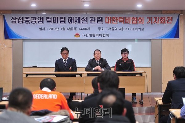 【뉴데일리 스포츠】삼성그룹이 직접 운영하던 스포츠팀 중 럭비단을 해체할 것이라는 이야기가 나오고 있는 가운데 6일 오후 2시 서울역 4층 대회의실에서 대한럭비협회가 기자회견을 열었다.