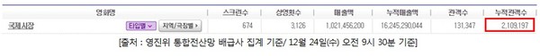 휴먼드라마 사상 최고의 오프닝 스코어 기록, 박스오피스 1위, 예매율 1위 등 각종 기록을 경신 중인 영화 '국제시장'이 개봉 8일 째만에 200만 관객을 돌파했다.
