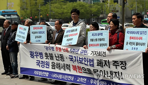 그들은 곧 한통속이 되어 대한민국의 정통성을 죽창으로 마구 찌르기 시작했다.