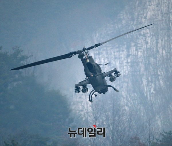이날 야외전술훈련은 코브라 공격헬기의 공중탐색작전을 시작으로 코브라헬기의 라켓과 기관총을 이용해 적을 제압했다.
