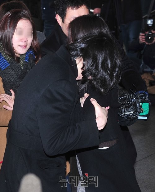 취재진들이 조현아 전 부사장의 양팔을 부여잡고 계속해서 질문했지만 조 전 부사장은 검찰 관계자의 팔에 매달리다시피 붙어 온몸을 바들바들 떨면서 고개를 푹 숙였다.