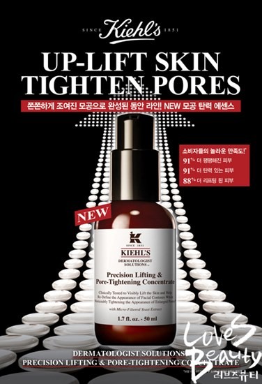 <키엘>은 최근 30대 여성 500명을 대상으로 안티에이징 고민을 조사했다. 그 결과 늘어진 모공과 탄력 없는 피부 고민이 각각 1, 2 위를 차지했다. 이에 키엘은 여성들의 안티에이징 고민을 위한 제품으로 [모공 탄력 에센스]를 선보인 것.