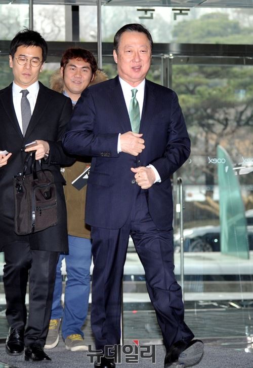 박용만 두산 회장이 5일 오후 서울 삼성동 코엑스에서 열린 경제계 신년인사회에 참석을 위해 입장하고 있다.