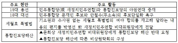 민주통합당(現 새정치민주연합)과 통합진보당(舊 민주노동당)은 19대 총선을 앞두고 2012년 3월10일 ‘범야권 공동정책 합의문’을 발표했다. -