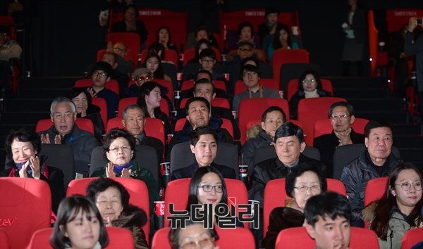 7일 오후 서울 서대문구 CGV신촌 아트레온에서 독거노인, 청년대학생, 파독근로자, 월남참전용사 등이 1세대와 3세대가 짝을 지어 영화 '국제시장'을 관람했다.