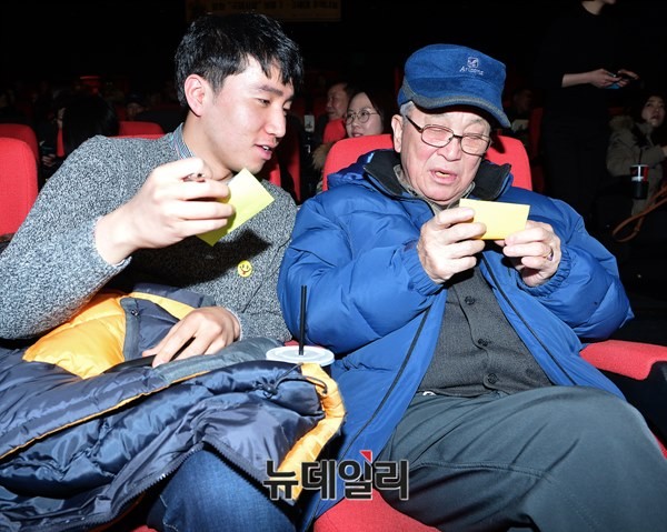 7일 오후 서울 서대문구 CGV신촌 아트레온에서 독거노인, 청년대학생, 파독근로자, 월남참전용사 등이 1세대와 3세대가 짝을 지어 영화 '국제시장'을 관람했다.