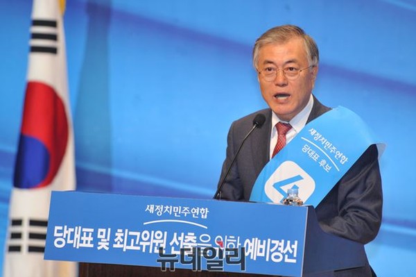 7일 오후 여의도 국회 의원회관에서 열린 새정치민주연합 전당대회 예비경선에서 문재인 후보가 정견발표를 하고 있다.