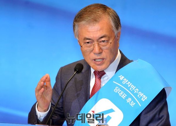 7일 오후 여의도 국회 의원회관에서 열린 새정치민주연합 전당대회 예비경선에서 문재인 후보가 정견발표를 하고 있다.