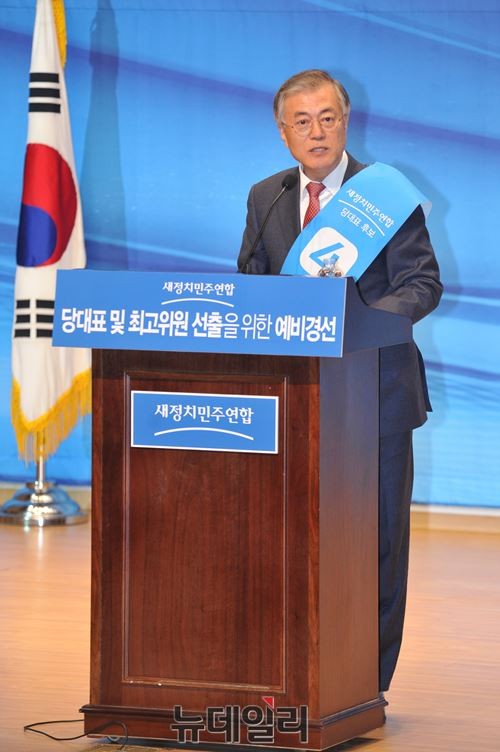 7일 오후 여의도 국회 의원회관에서 열린 새정치민주연합 전당대회 예비경선에서 문재인 후보가 정견발표를 하고 있다.