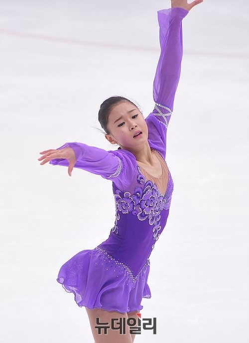 이날 오후에 열린 여자 프리 스케이팅에 참가한 화정고 채송주 선수가 멋진 연기를 펼치고 있다.