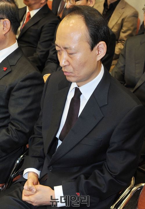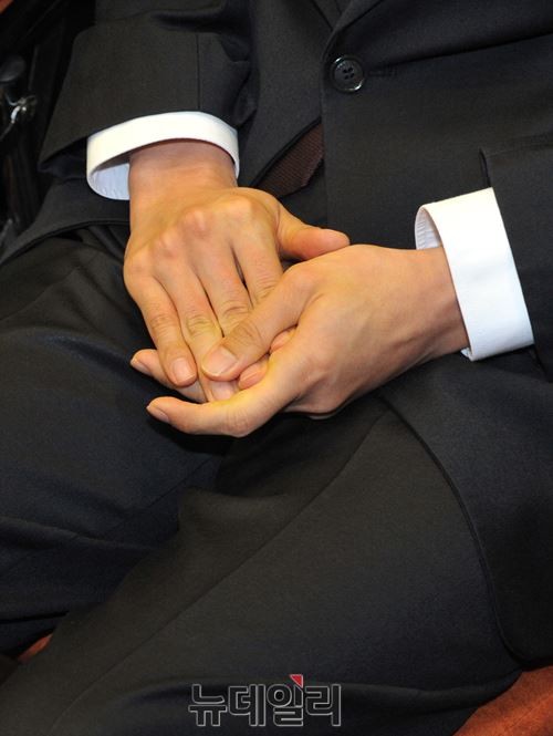 이재만 청와대 총무비서관이 9일 오후 여의도 국회에서 청와대 문건유출 관련 현안보고를 위해 열린 운영위원회 전체회의에 자신의 손을 만지고 있다.