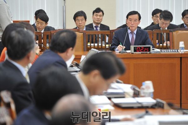 이 12일 오전 서울 여의도 국회에서 열린 안전행정위원회 전체회의에서 의원들에게 의정부 화재사고 관련 질문을 받고 있다.