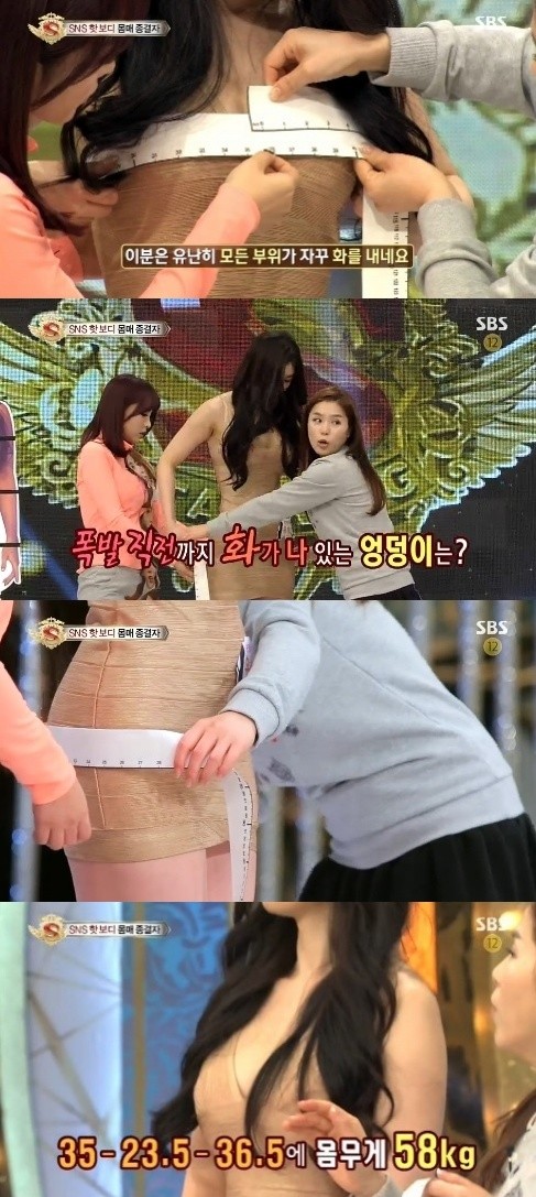 '스타킹' 유승옥의 가슴크기에 모두가 놀랐다.지난 17일 오후 SBS '놀라운 대회 스타킹'(이하 '스타킹')에는 머슬마니아 세계대회 커머셜 모델 부문에서 동양인 최초로 TOP5 진출해 화제를 모은 유승옥이 출연했다.이날 유승옥은 "비율은 타고난 편"이라며 "열심히 운동을 해서 지금의 몸매를 만들었다. 운동을 하지 않으면 어깨도 넓고 키도 커서 육덕진 스타일이 된다"면서 자신만의 운동법을 소개했다.이어 유승옥은 키 173cm, 몸무게 58kg인 사실을 공개했고, 패널 김지선이 나와 직접 신체 사이즈를 쟀다. 그 결과 가슴둘레는 35, 허리 23.5, 엉덩이 둘레는 36.5인치였다.김지선은 유승옥의 몸매를 측정하면서 "이 분은 유난히 모든 부위가 자꾸 화를 낸다"고 부러움을 드러냈다. 또, MC 강호동은 "투샷에 졸지에 제 몸이 더럽게 보인다"고 말해 웃음을 자아냈다.['스타킹' 유승옥 신체사이즈, 사진=SBS '스타킹' 방송 캡처]