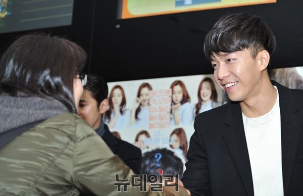 배우 겸 가수 이승기가 22일 오후 서울 용산구 용산CGV에서 팬들을 만나 인사를 나누고 있다.