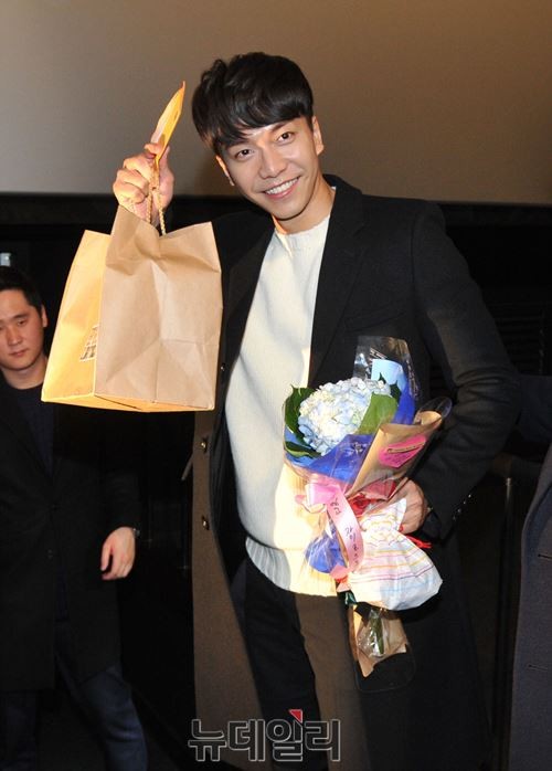 배우 겸 가수 이승기가 22일 오후 서울 용산구 용산CGV에서 팬들을 만나 인사를 나누고 있다.