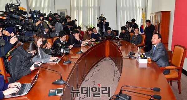 이완구 새누리당 원내대표 23일 서울 여의도 국회 새누리당 원내대표실에서 본인의 국무총리 내정 관련 기자회견을 가지고 있다.