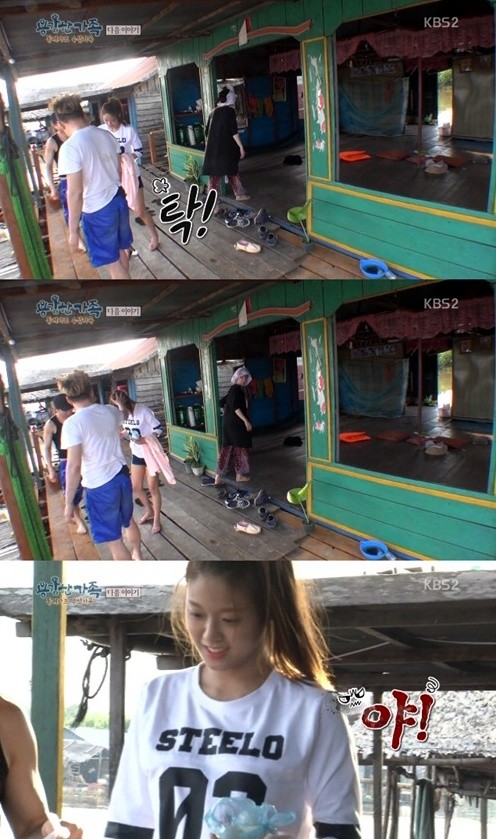 '용감한 가족' 측이 박명수가 걸그룹 AOA 설현의 머리를 밀쳤다는 논란에 대해 해명했다.지난 23일 첫 방송된 KBS 2TV '용감한 가족'은 아빠 이문식, 엄마 심혜진, 삼촌 박명수, 큰딸 최정원, 아들 민혁, 막내딸 설현이 한 가족이 돼 이색적인 캄보디아 톤레사프 호수의 수상가옥 적응을 위해 첫 발을 내딛는 모습이 그려졌다.이날 방송 말미 다음회 예고편에서는 설현이 어렵게 구한 달걀을 깨트리자 박명수가 설현의 머리를 살짝 밀치는 듯한 모습이 포착됐다. 이어진 장면에서는 설현이 눈물을 흘리는 모습이 공개돼 눈길을 끌었다.방송 직후 박명수의 태도를 문제 삼으며 논란이 거세지자 '용감한 가족' 제작진은 "박명수가 설현의 머리를 밀쳤다는 것은 오해다"며 "설현을 때린 것이 아니다. 박명수가 살짝 핀잔을 준 것이 그렇게 보인 것 같다. 오해 없기를 바란다"고 밝혔다.한편, '용감한 가족'은 연예인들이 가족을 구성해 세계의 특색 있는 지역의 가족들과 이웃이 되어 살아보며 그들의 삶을 진지하게 들여다보는 새로운 형태의 시츄에이션 리얼리티 프로그램. 매주 금요일 밤 11시 5분 방송된다.['용감한 가족' 설현 박명수 논란, 사진=KBS2 '용감한 가족' 방송 캡처]