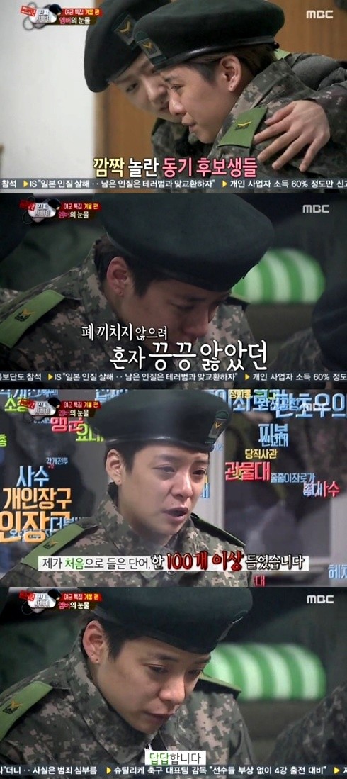 '진짜사나이 여군특집2' 엠버가 답답함에 눈물을 보였다.지난 25일 방송된 MBC '일밤-진짜사나이 여군특집2'에서는 부사관 후보생이 되기 위한 김지영, 박하선, 강예원, 이다희, 이지애, 안영미, 윤보미, 엠버 등 멤버들의 입소과정이 그려졌다.이날 엠버는 식사를 마치고 생활관에 들어서자마자 갑작스레 눈물을 흘려 동기들을 깜짝 놀라게 했다.멤버들이 왜 우는지 묻자 엠버는 "훈련받고 있는데 진짜 못알아 듣겠다. 너무 답답하다. 설명해주셔도 잊고 혼나서 답답하다"며 "처음으로 들은 단어가 100개 이상 된다. 최선을 다해도 역부족이라 답답하다"고 토로했다.이에 동기들은 "그런 걸로 혼나지 않는다. 우리가 도와주겠다"고 엠버를 감싸줬다. 하지만 소대장은 "지금 모든 후보생이 다 똑같다. 그렇다고 생활관 분위기를 흩트리면 되나"라고 냉정하게 말했다.['진짜사나이 여군특집2' 엠버 눈물, 사진=MBC '진짜사나이' 방송 캡처]