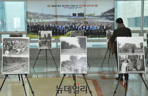 [사진으로 읽는 월남전참전과 파병]전이 새누리당 유일호 의원 후원, 대한민국월남전참전자회 주최로 26일부터 28일까지 서울 여의도 국회 의원회관 2층 로비에서 3일간 열린다.이번 행사는 월남전 참전 50주년 기념으로 일반인들이 월남전이 왜 일어났는지? 한국군이 무엇 때문에 이역만리 열사의 땅에서 죽어 가야 했는지? 월남전의 의미를 재조명하고 일반인과 청소년들의 국가관과 역사관 확립을 위해 열렸다.
