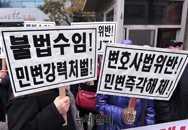 어버이연합과 교학연 등 애국단체는 29일 오후 서울 서초동 민주사회를위한변호사모임 앞에서 [과거사 사건 수임] 의혹과 관련 민변 해체 및 변호사들의 처벌을 촉구하는 기자회견을 열었다.