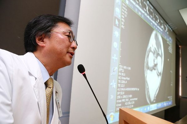 29일 오후 서울 종로구 서울대학교병원에서 열린 이완구 국무총리 후보자의 차남 이모 씨 병역 관련 공개 검증에서 서울대 이명철 정형외과 교수가 MRI 사진에 대해 설명하고 있다.