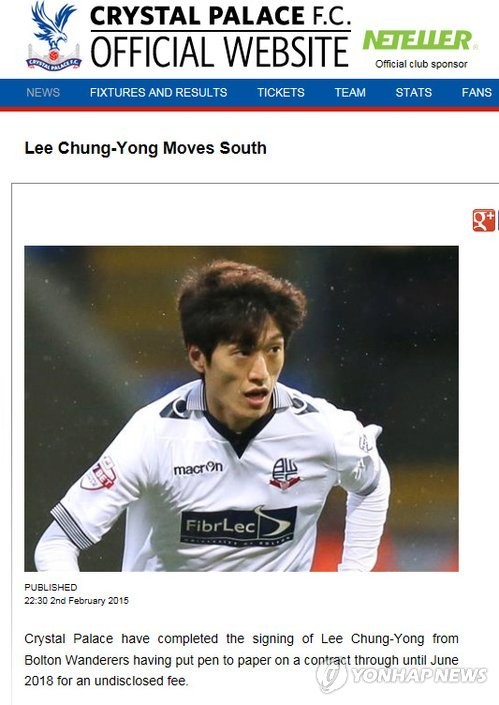[이청용 이적료, 사진=크리스탈 팰리스 홈페이지 캡처]