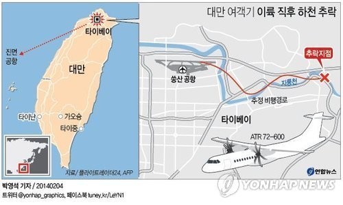 4일 오전 타이베이(臺北) 쑹산(松山)공항을 이륙한 대만 여객기가 하천으로 추락해 25명이 숨지고 15명이 부상당하는 사고가 발생했다.