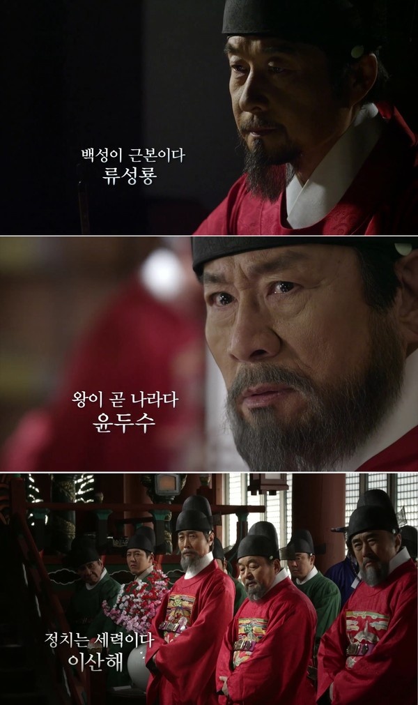 "백성이 근본이다"는 류성룡, "정치는 세력이다"라는 이산해, "왕이 곧 나라다"라는 윤두수 등 각기 다른 정치관을 가진 주요 대신 3인. 이 가운데 진심으로 왕의 마음을 헤아려보기 보다는 붕당 정치에만 여념이 없었던 신하들 사이에서 살아남기 위해 몸부림쳤던 선조의 갈등이 그려지면서 밀도 있는 정치 사극의 장을 예고했다.
