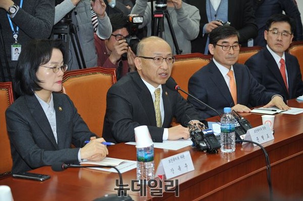 문형표 보건복지부 장관이 6일 오후 서울 여의도 국회 새누리당 원내대표실에서 열린 건강보험료 개편 관련 당정 현안보고에서 참석해 앉아 있다.