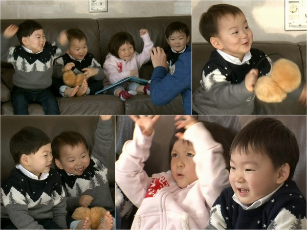 추사랑과 '삼둥이' 대한 민국 만세가 업그레이드된 혼성 4인조 '바라밤 댄스'를 선보이며 또 한 번 돌풍을 예고했다.8일 방송될 KBS 2TV '해피선데이-슈퍼맨이 돌아왔다'(이하 '슈퍼맨')에서 추사랑과 대한 민국 만세는 4인조 바라밤 댄스부터 만두 빚기까지 섭렵하며 최강 4남매의 면모를 과시한다.이날 추사랑과 삼둥이는 아이돌의 '칼군무' 부럽지 않은 찰떡 호흡으로 바라밤 댄스를 선보여 단숨에 시선을 사로잡았다. 네 아이들은 너나 할 것 없이 격렬한 팔 동작을 선보이며 넘치는 흥을 발산해 웃음을 자아냈다.사랑과 삼둥이는 즐거운 댄스타임에 얼굴 가득 미소가 떠나지 않았다. 연신 '까르르 까르르' 웃음소리가 터져 나오는 업그레이드 바라밤 댄스에 아빠 송일국마저 하회탈 웃음을 지어 보이며 함께 춤을 춰 웃음을 터트렸다.바라밤 댄스의 찰떡 호흡은 만두 빚기까지 이어졌다. 사랑과 삼둥이는 온몸이 밀가루 범벅이 되는 줄도 모른 채 옹기종기 모여 앉아 만두피를 만들었고, 한 가족 같은 사랑과 삼둥의 모습에 아빠들은 흐뭇한 미소를 감추지 못했다.KBS 2TV '슈퍼맨이 돌아왔다' 64회는 8일 오후 4시 50분에 방송된다.['슈퍼맨이 돌아왔다' 추사랑 삼둥이 바라밤댄스, 사진=KBS]