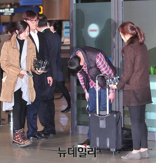 기내에서 만취해 난동을 부려 물의를 빚었던 가수 바비킴이 13일 오후 인천국제공항을 통해 입국했다. 공항에 도착한 바비킴은 모자를 벗고 허리숙여 사과했다.