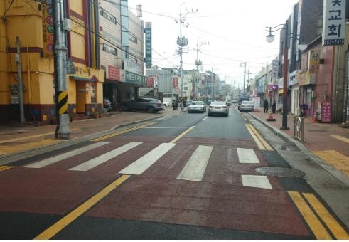 보도 양측에 보행자를 위한 보도가 새로 만들어졌고, 시선을 막는 전신주의 자리가 바뀌었다. 황단보도가 새롭게 깔리고 과속방지턱, 교통안전 표지판과 가로등이 설치됐다.