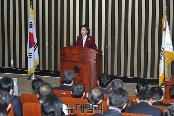 나경원 새누리당 의원이 26일 오전 서울 여의도 국회 246호실에서 열린 외교통일위원장 후보자 선출을 위한 의원총회에서 정견발표를 하고 있다.