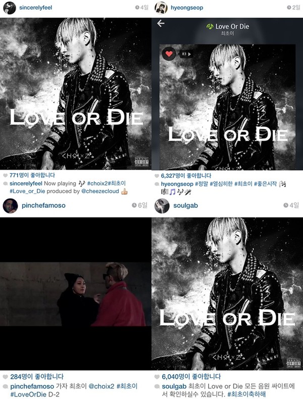 가수 김필은 "Now playing" 이라는 글로 최초이를 응원했다. 모델 박형석은 "정말 열심히한 최초이 좋은 시작"이라는 격려글로 응원을 보냈다. 울랄라세션의 박광선은 "가자 최초이"라는 글과 함께 최초이의 티져 영상을 올렸고, 가수 주영은 "최초이 Love or Die 모든 음원 사이트에서 확인하실수 있습니다. 최초이 축하해"라는 글로 이제 막 가요계에 입문한 신예 스타를 응원했다.