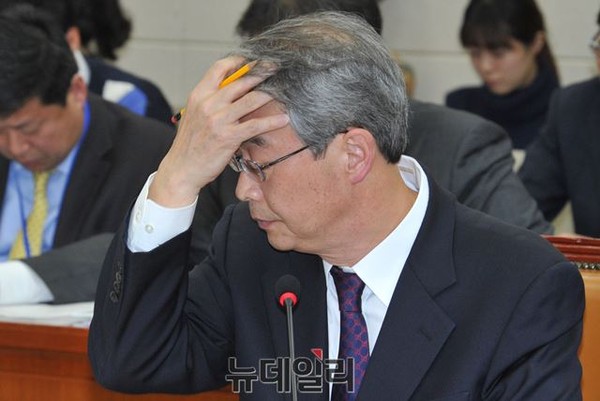 임종룡 금융위원장 후보자가 10일 오전 서울 여의도 국회 정무위원회에서 열린 인사청문회에서 머리를 만지고 있다.