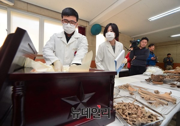 한-중 양측이 16일 오후 경기 파주에 위치한 중국군 유해 임시안치소에서 6·25전쟁에서 전사한 중국군 유해 68구의 입관식 행사를 개최했다.