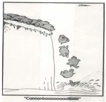 뒤에서 계속 밀치고 오다보니 그 중 한 명이 낭떠러지 밑으로 떨어진다.