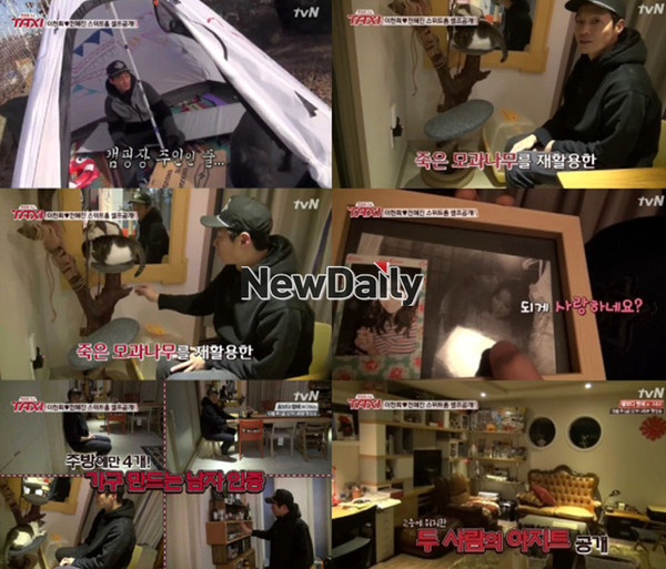 배우 이천희가 스위트홈을 공개했다.이천희는 지난 17일 방송된 tvN '현장토크쇼 택시'(이하 '택시')에 출연해 전혜진과의 결혼 비하인드 스토리, 신혼집 공개부터 동생 이세희와 함께 운영하고 있는 가구 공방 이야기까지 모두 털어놨다.경기도 광주에 위치한 이천희 전혜진 부부의 집은 이천희가 직접 만든 가구로 가득 채워진 실내 인테리어는 물론 아이와 함께 뛰어 놀 수 있는 정원 속 작은 캠핑 라이프가 눈길을 끌었다.'택시' MC 이영자와 오만석은 자연친화적인 이천희 집을 보고 "집이 저택이다", "대충 잡아도 300평은 되는 것 같다"고 놀라움을 드러냈다.특히, 근처에 이병헌, 엄태웅, 변정수가 사는 것으로 알려져 눈길을 끌었다. 이천희는 "내 집은 아니고 전세다. 아내가 마당에서 아이와 놀고 싶다고 해서 이 집을 골랐다"고 밝혔다.한편, 이천희 전혜진 부부는 지난 2011년 3월 결혼식을 올렸으며, 같은 해 7월 딸 이소유 양을 얻었다.[이천희 집 공개, 사진=tvN '택시' 방송 캡처]