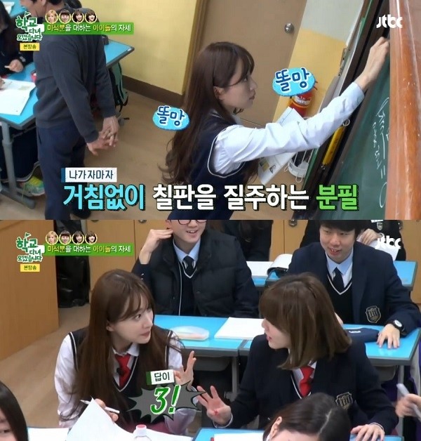 EXID 하니가 '학교 다녀오겠습니다'에서 엄친딸의 면모를 유감없이 발휘했다.지난 17일 밤 방송된 JTBC '학교 다녀오겠습니다'에서는 EXID 하니, AOA 지민, 강남, 남주혁, 강용석, 전현무, 은지원, 강균성이 출연했다.이날 하니는 중국 유학파 출신답게 중국어 시험에서 20점 만점에 19점을 받으며 유창한 중국어 회화 실력을 드러낸 것은 물론 영어까지 능통한 모습을 보여 시선을 끌었다.이어 하니는 수학 미적분 수업 시간에도 AOA 지민에게 정답을 알려주는 여유를 보였다. 특히, 하니는 수학 선생님의 문제 풀이 요청에 적극적인 자세로 참여해 차분히 '미적분' 문제를 풀어 정확히 정답을 맞췄고, 선생님은 "역시 정답"이라고 칭찬했다.한편, EXID 하니는 오는 4월 1일 방송되는 JTBC '크라임씬2'에 출연해 신 엄친딸의 면모를 또 한 번 뽐낼 예정이다.[학교 다녀오겠습니다 하니, 사진=JTBC '학교 다녀오겠습니다' 방송 캡처]