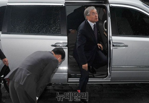 문재인 새정치민주연합 대표가 18일 오전 경남 창원시 경남도청에서 열린 홍준표 경남도지사와 회동을 위해 들어오고 있다.