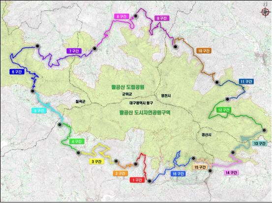 또 대구 동구, 경산시, 영천시, 군위군, 칠곡군 등 5개 시·군·구와 시민단체 등이 참여하는 공동협의체를 구성, 대한민국을 대표하는 명품 숲길을 조성할 방침이다.